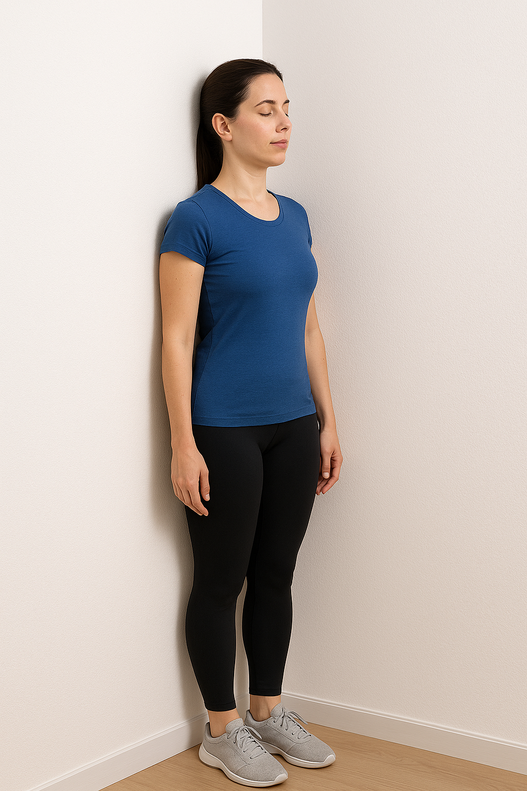 Reeducación postural en pared | Alineación y control postural | 1-2 minutos |