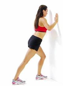 Mantener el talón firmemente en el suelo mientras se inclina hacia delante y empujar contra la pared de enfrente. |