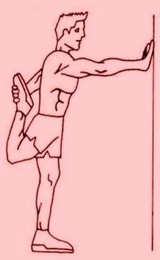 Estiramiento de la pantorrilla. Colóquese contra una pared como se muestra. Mantenga su talón izquierdo sobre el suelo para sentir la parte posterior de la pierna estirada. Mover sus caderas lentamente hacia adelante hasta que sienta un estiramiento en la pantorrilla de su pierna recta. Asegúrese de mantener el talón del pie de la pierna recta sobre el suelo y mantenga los dedos de los pies hacia adelante. Mantenga la posición durante 10 a 20 segundos. No rebote. Haga el ejercicio de 6 a 10 veces. Estire ambas piernas | Estiramiento del tendón de Aquiles y soleo. doblar ligeramente la rodilla, manteniendo el pie plano. Esto le proporciona un estiramiento mucho más bajo, que también es bueno para mantener o recuperar la flexibilidad del tobillo. Estire durante 10 segundos en cada pierna. Esta área necesita sólo una ligera sensación de estiramiento. |