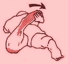 cadera. Sujete la parte exterior de su tobillo con una mano,