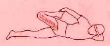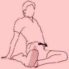Siéntese con su pierna derecha estirada. Flexione su pierna izquierda, y cruce el pie izquierdo y el resto más que en el exterior de la rodilla derecha. Luego doble el codo derecho y póngalo en la parte externa del muslo , justo por encima de la rodilla. Durante el estiramiento utilizar el codo para mantener esta pierna en esta posición manteniendo una presión en la parte externa de la rodilla. Ahora, con la mano izquierda apoyada detrás de usted, gire lentamente la cabeza para mirar por encima de su hombro izquierdo, y al mismo tiempo, girar la parte superior del cuerpo hacia su mano izquierda y el brazo. A medida que gira la parte superior del cuerpo, piense en girar sus caderas en la misma dirección (aunque sus caderas no se mueve porque su codo derecho está sujetando la pierna izquierda). Esto debería provocar un estiramiento en la región lumbar y en la la parte lateral de su cadera. Mantenga durante 15 segundos. Hacer ambas partes. No mantenga la respiración; respirar fácilmente. | Lumbar glúteos: flexione su pierna y, con su mano opuesta, tire de la pierna flexionada sobre la otra pierna, como se muestra en la figura. Gire su cabeza para mirar hacia el lado del brazo que está extendido (la cabeza debe descansar en el suelo). Asegúrese de que la parte posterior de sus hombros se mantienen en el suelo. Ahora, con su mano sobre el muslo (justo por encima de la rodilla), tire de su pierna doblada hacia el suelo hasta que tenga la sensación de estiramiento de la parte lumbar y los lados de la cadera. Mantenga los pies y los tobillos relajados. Mantenga un estiramiento cómodo de 30 segundos, cada una de las partes. |