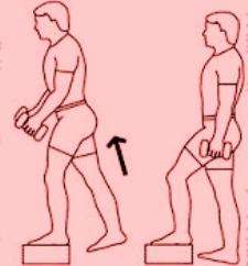 rodillas. Sostenga esta posición hasta contar cinco y baje. Repítalo 5 veces. |