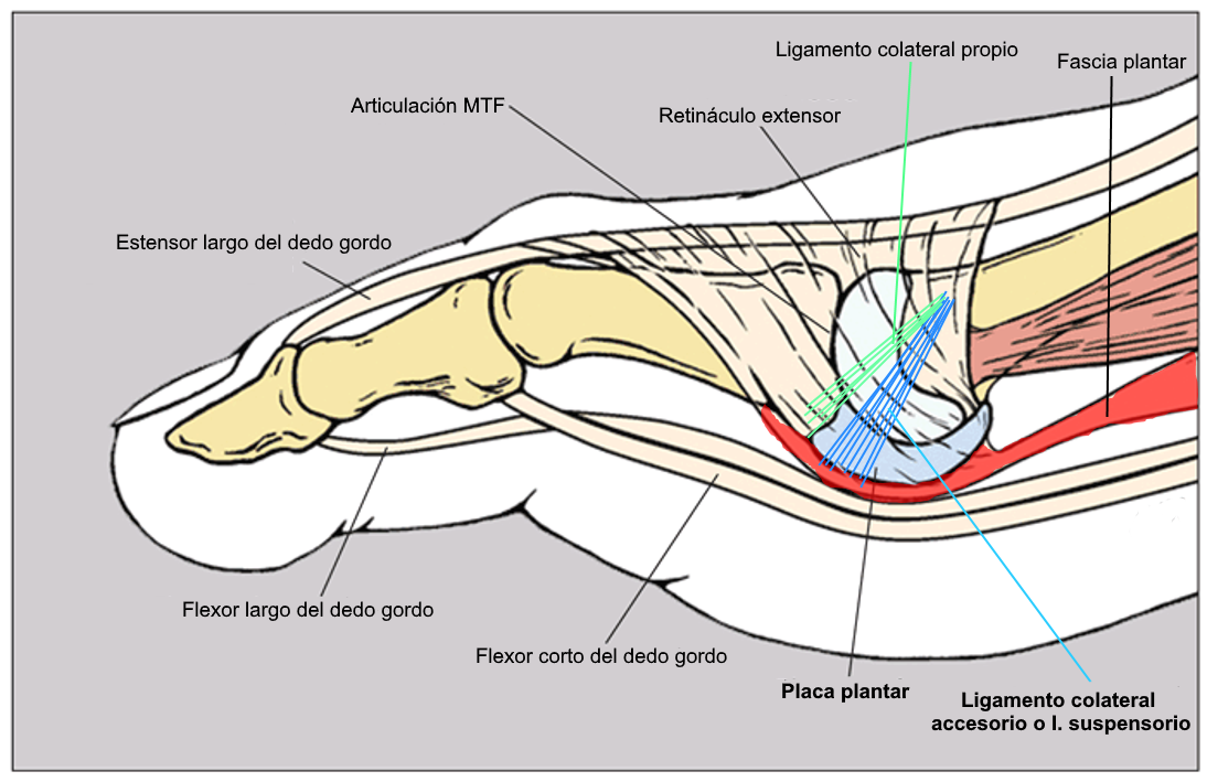 Anatomía de la placa plantar y sus anexos en la articulación metatarsofalángica menor.