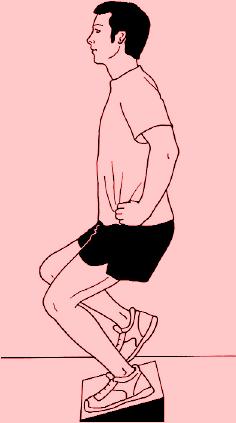 Coloca un escalón o plataforma baja (10-15 cm de altura) frente a ti. De pie, con los pies a la anchura de las caderas.